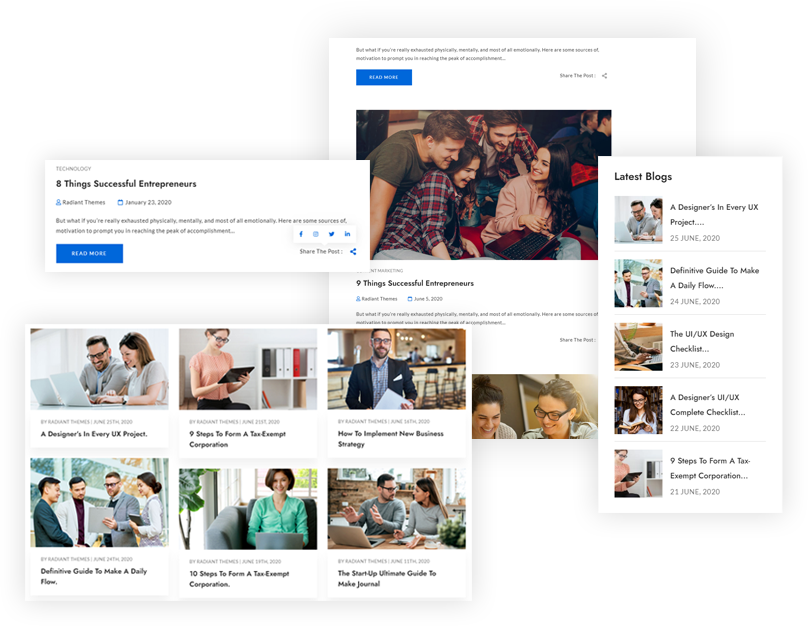 Unique Blog Experience with various layouts for blog posts. You can choose from grid, masonry, classic and many more.