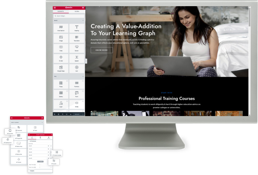 Elementor is a Free Page Builder Which Your Can Use to Drag & Drop Elements to Create / Edit Pages. We Have Created and Included Custom Elements With EduSphere.